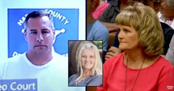 A sinistra: Brooks Houck appare tramite video per la sua citazione in giudizio per l'accusa di omicidio presso il tribunale di circoscrizione della contea di Nelson (Ky.) il 5 ottobre 2023 (tramite YouTube screengrab/WDRB). A destra: Sherry Ballard, madre di Crystal Rogers e moglie di Tommy Ballard (tramite YouTube screengrab/WDRB). Nel riquadro: Crystal Rogers (tramite FBI).